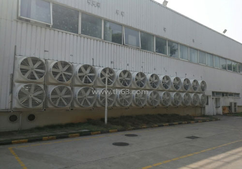 在廠房窗戶(hù)的一端安裝上降溫水簾片/濕簾墻降溫設(shè)備,與之相對(duì)的一端安裝負(fù)壓風(fēng)機(jī),應(yīng)用負(fù)壓風(fēng)機(jī)將廠房?jī)?nèi)的熱氣抽出,在通風(fēng)散熱除塵的同時(shí),室內(nèi)外造成氣壓差,促使外界的空氣經(jīng)由降溫水簾片/濕簾墻所形成的水膜蒸發(fā)吸熱瞬間降溫,涼爽空氣便會(huì)源源不斷的吹入廠房?jī)?nèi)部,進(jìn)而營(yíng)造一個(gè)舒適、涼爽、清新的工作環(huán)境。不管是在多么炎熱的夏天,降溫濕簾+負(fù)壓風(fēng)機(jī)通風(fēng)降溫系統(tǒng)可使用您的廠房溫度始終保持在24℃~29℃之間,使空氣進(jìn)行室內(nèi)外循環(huán),增加空氣含氧量,可在極大程度上減少職業(yè)病的發(fā)生,進(jìn)而提高工作效率。