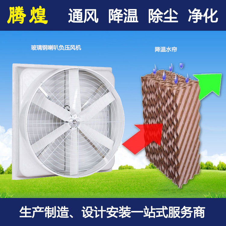 負壓風機的通風降溫原理:負壓風機裝在廠房的一側往外抽出空氣,而且使室內構成負壓可吸入外氣,濕簾裝在廠房的另一側,將室外引入的空氣透過水蒸氣帶走熱量,降低室內溫度,這樣的通風工程成本低,降溫效果可達20℃。